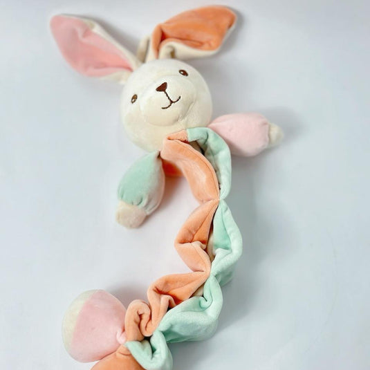 Muñeco de apego musical de felpa suave e hipoalergénico. Al tirar su cuerda, una suave melodía suena, perfecto para calmar a tu bebé, ayudándolo a dormir.